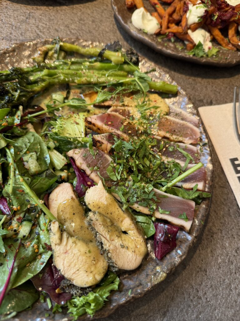 La filosofía de Honest Greens se basa en la honestidad de sus ingredientes. Cocinan con lo que la tierra ofrece en cada estación, y eso se nota en el sabor. Olvídate de ensaladas tristes; aquí cada plato es una explosión de creatividad. El pollo se asa a la brasa con limón, el falafel es 100% casero y el tataki de atún rojo se baila con ají amarillo y teriyaki.