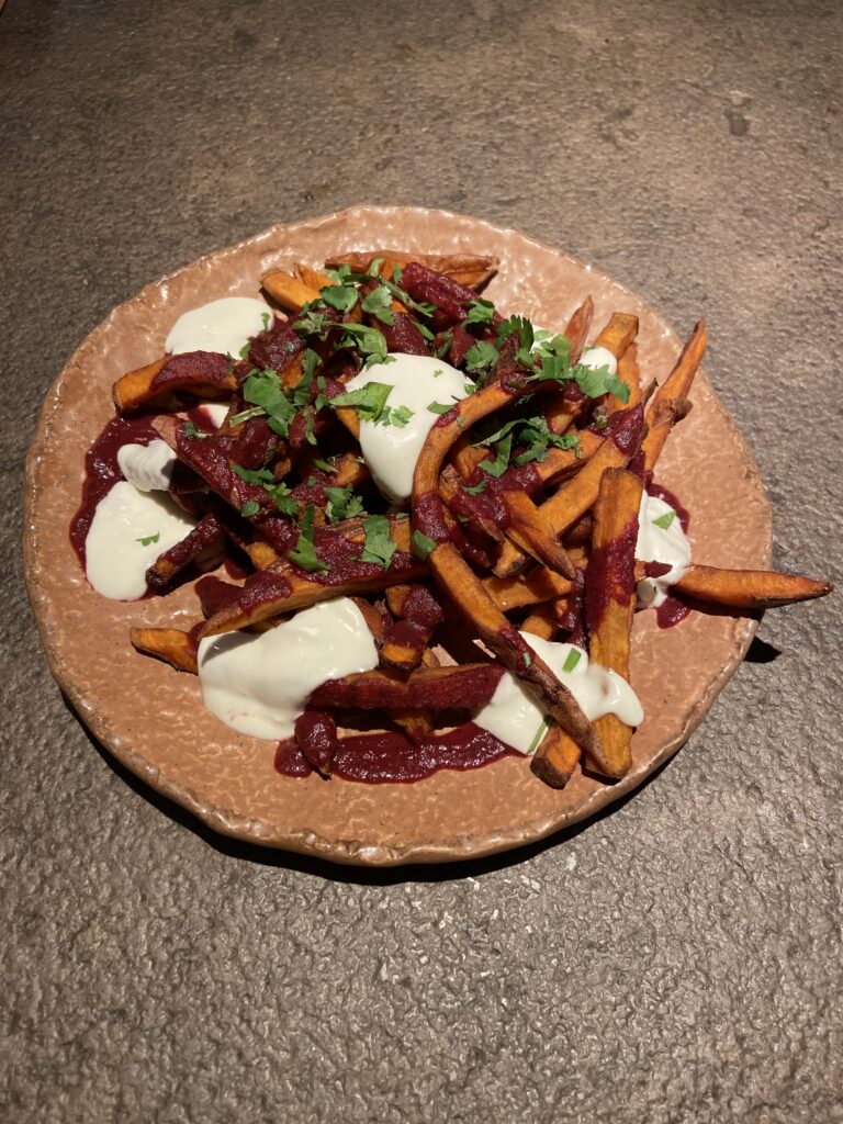 • Boniato chips: Un best seller indiscutible que se acompaña con su famoso kétchup de remolacha y alioli casero.